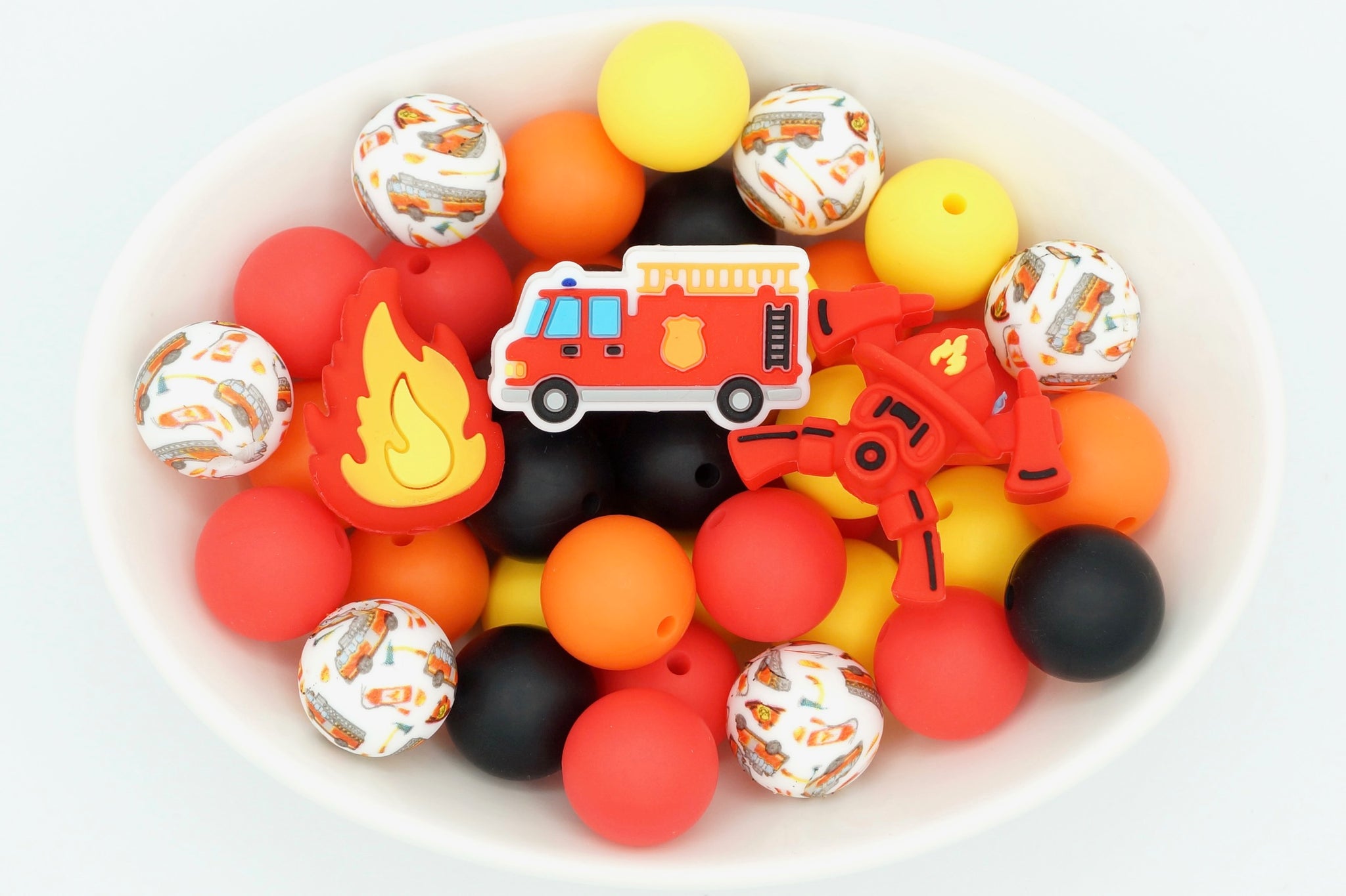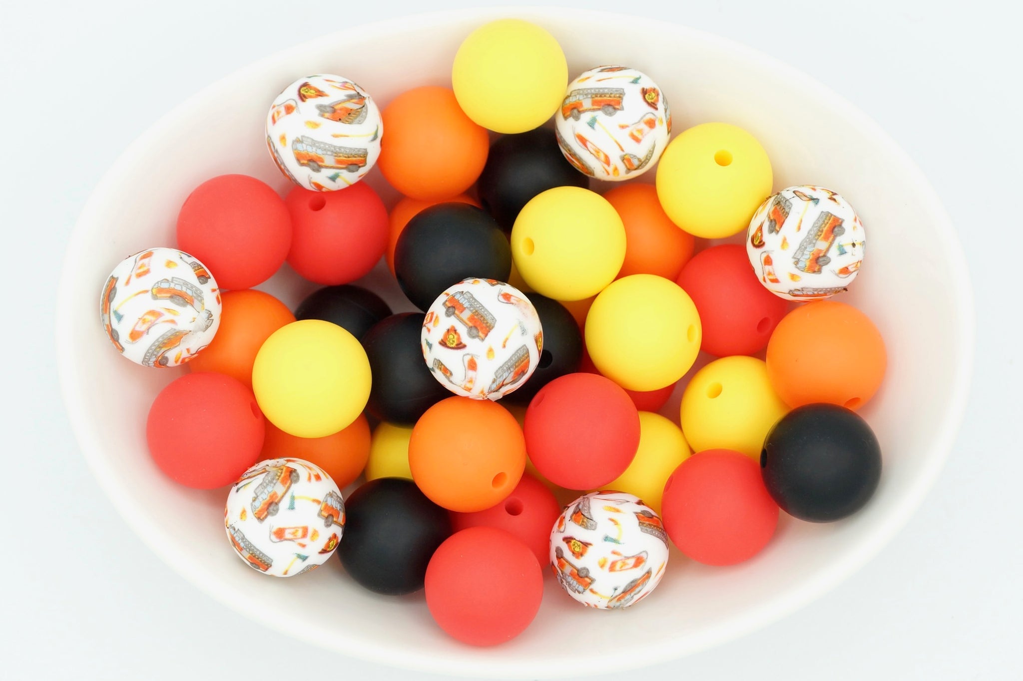 - Each 25 bead pack includes 6 print beads (15mm) and 19 solid beads in the colour combination shown