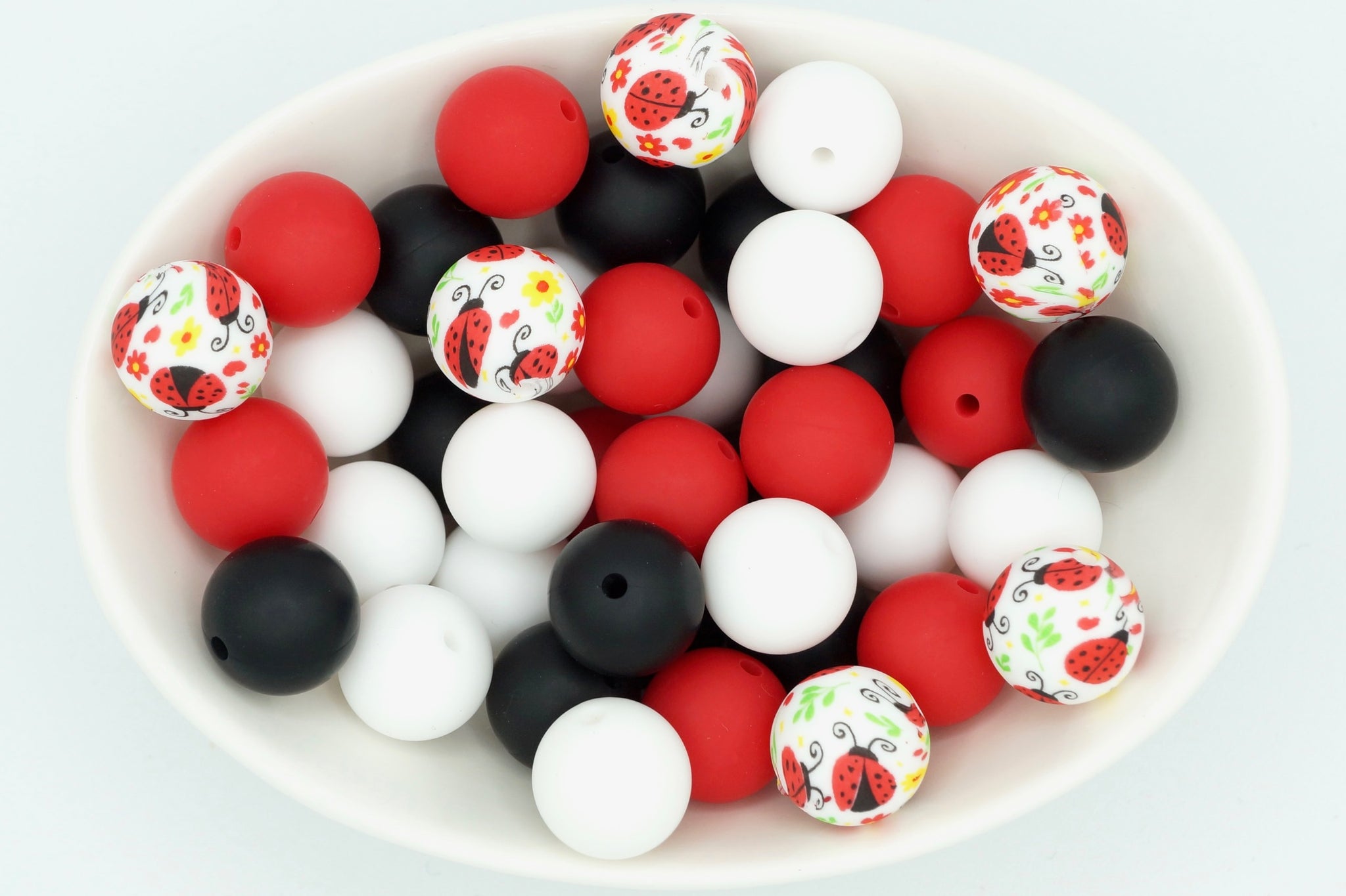 • Each 25 bead pack includes 6 print beads (15mm) and 19 solid beads in the colour combination shown