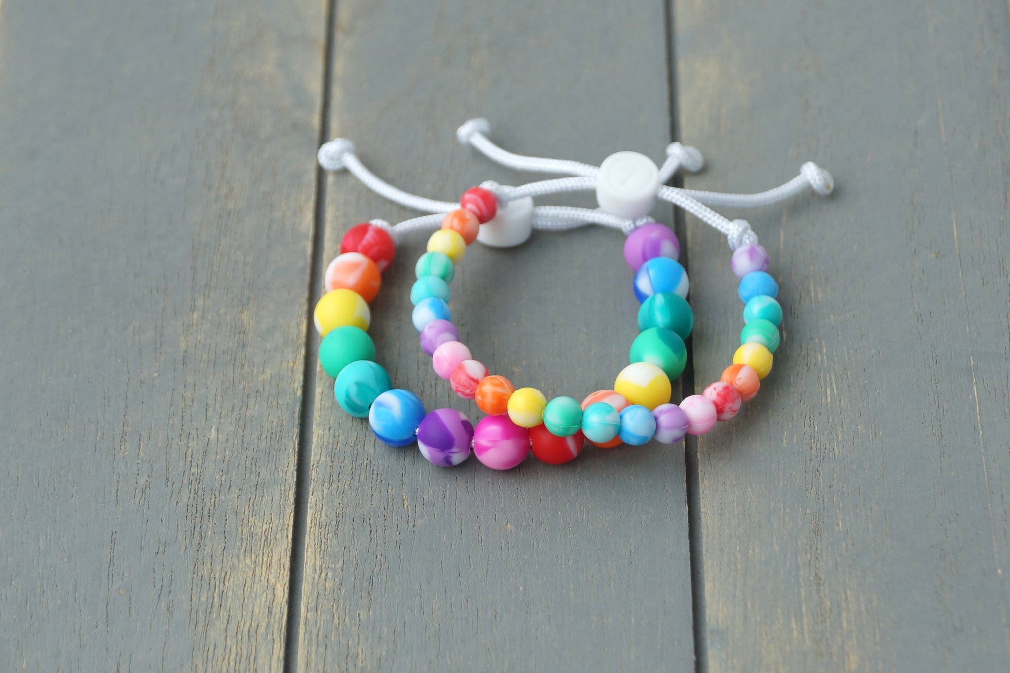 - 6 mm or 9 mm silicone beads on 1.5 mm nylon cord or #95 paracord (thicker cord with a tighter fit and sporty look)